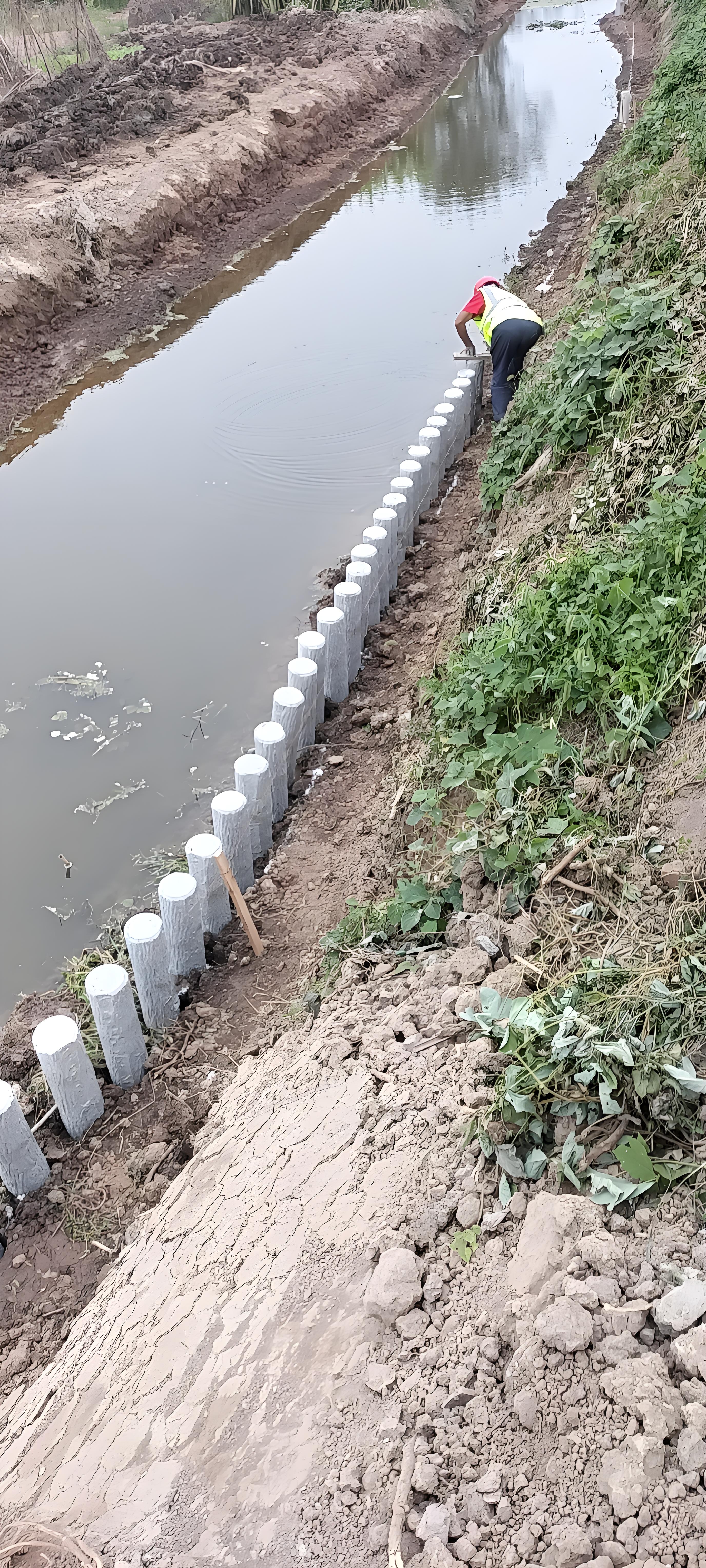 如果仿木樁只是外觀有磨損,內部結構完好,最簡單的方式就是 “修復后直接復用”。操作很簡單:先清理樁體表面的灰塵、雜質,用水泥砂漿修補小裂縫或掉皮的地方,干燥后再刷一層仿木涂料,就能恢復基本外觀。這種方式適合用于對外觀要求不高的場景,比如農村田間的灌溉水渠護岸、養殖場的圍欄樁、小區綠化帶的隔離邊界等。